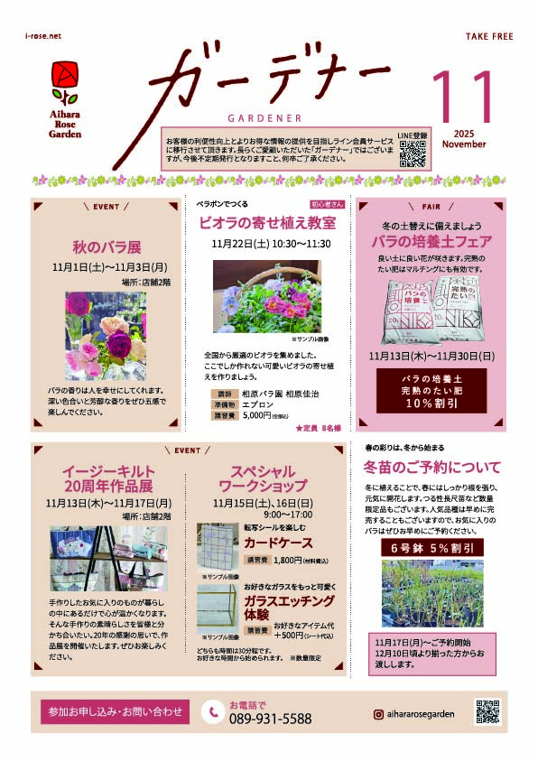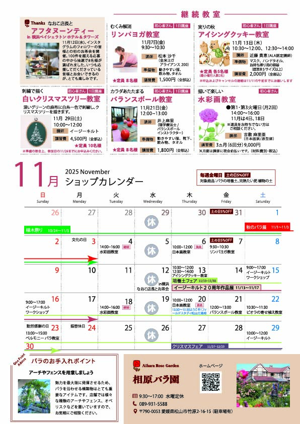 講座につきましてはお電話でご予約下さい。 089-931-5588(水曜日定休 9:30~17:00)